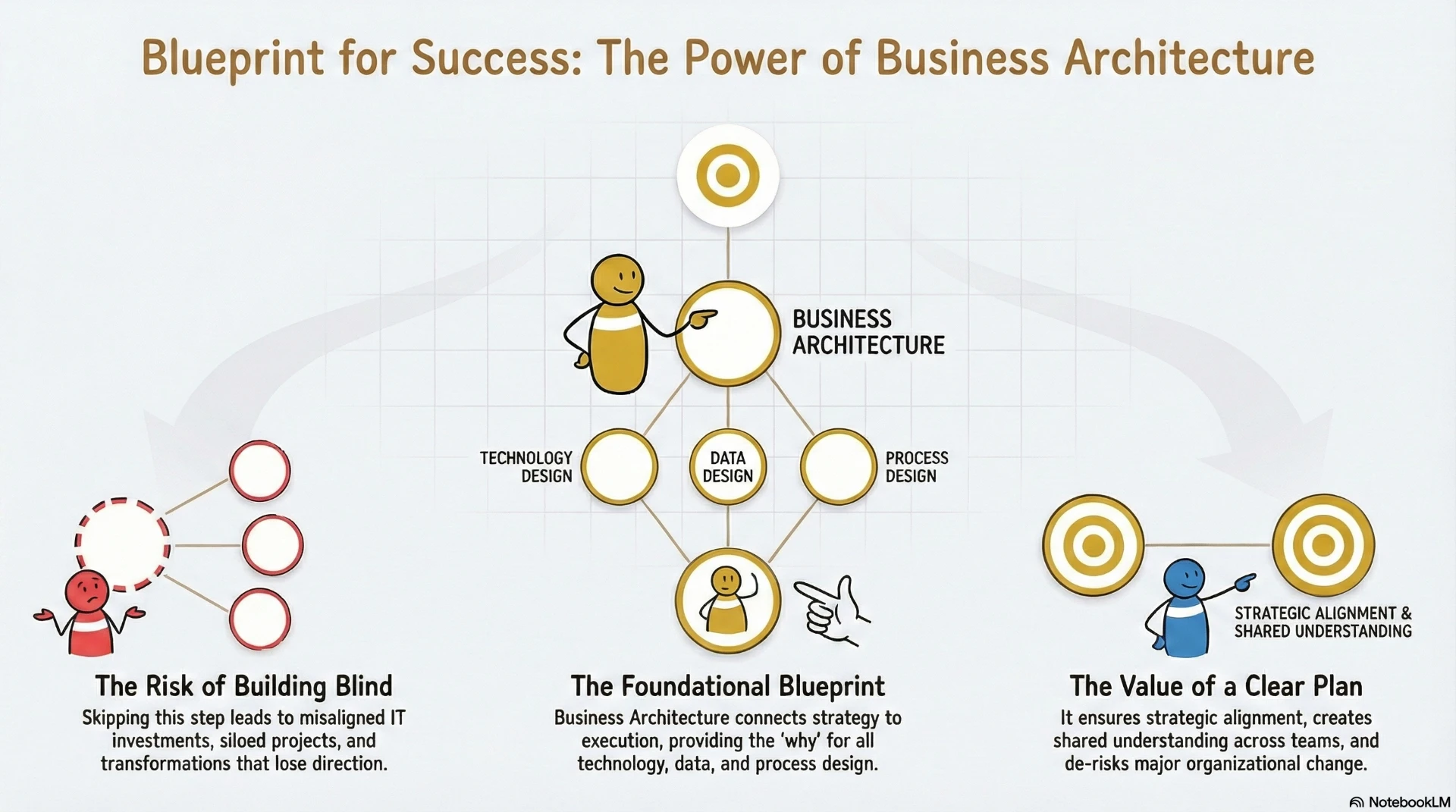 This chapter introduces Business Architecture as the foundation connecting strategy to operations. It details the Business Architect role, outlines the EBA Roadmap phases, and uses a case study to demonstrate how BA guides organizational transformation.