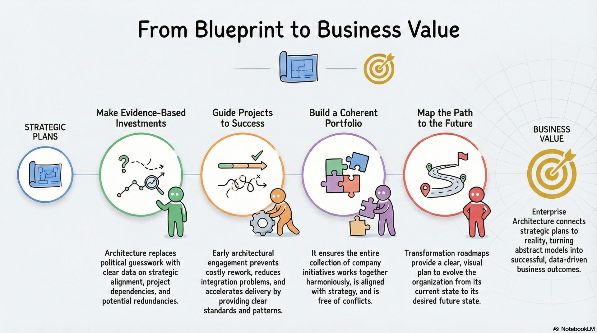 This chapter demonstrates how to operationalize architecture by connecting it to investment decisions, governance, and portfolio management. It explains how mechanisms like review boards and roadmaps ensure architecture guides projects and delivers tangible business value.