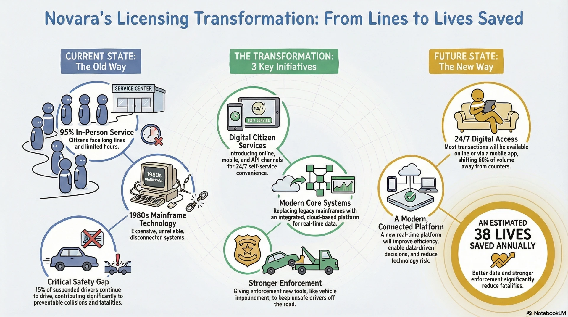 This chapter applies all modeling techniques to a comprehensive case study of the Novara Driver and Vehicle Licensing Program. It demonstrates how to analyze transformation initiatives, assess risks, and develop architecture-based recommendations for complex public sector service delivery.