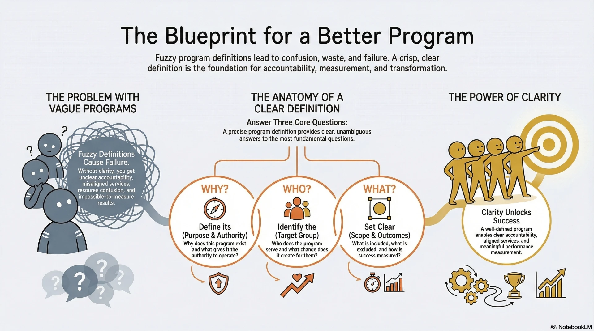 1. **Definition Discipline**: How well are programs defined in your organization? Do programs have clear purpose statements, scoped boundaries, and measurable outcomes - or are they vaguely described?