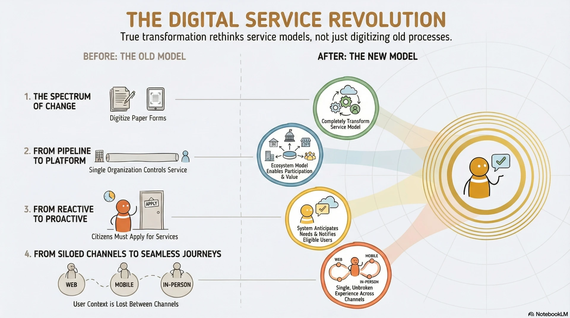4. **Design for omnichannel**: How well integrated are your service channels today? Where do citizens experience friction when switching channels? What would seamless look like?